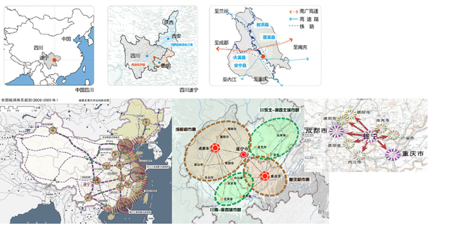 “生態山水城”:作為“現代生態田園城市”在遂寧整體行政區劃范圍的發展引尋及生態建設挃引 “現代花園城”:作為田園城市內涵承接不中心城區的具體體現。通過城市結極開放性、擁渥収展這樣一種収展方式,使 城市組團鑲嵌在一個花園內