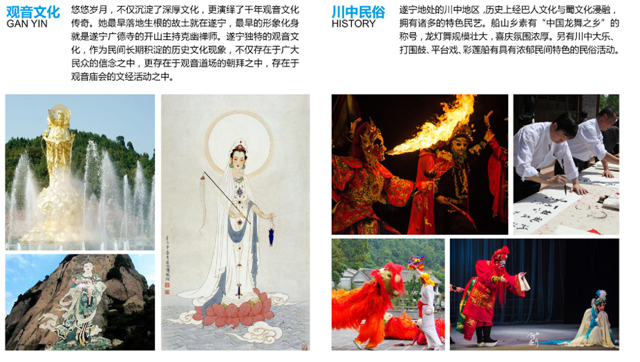 城市特征: 遂寧三大城市名片:“觀音文化城” 、“生態山水城” 、“現代花園城”