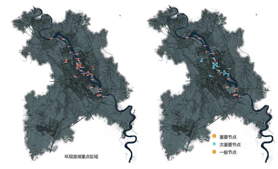 遂寧市環觀音湖片區位于遂寧市河東新區濱水沿線,是利用河岸灘涂打造的一條集文化、旅游、觀光、休閑于一體城市濱水 4A 級旅游景區。本次方案規劃設計希望通過對環觀音湖片區夜景照明效果改造從而提升城市風貌、構建城市夜景名片。